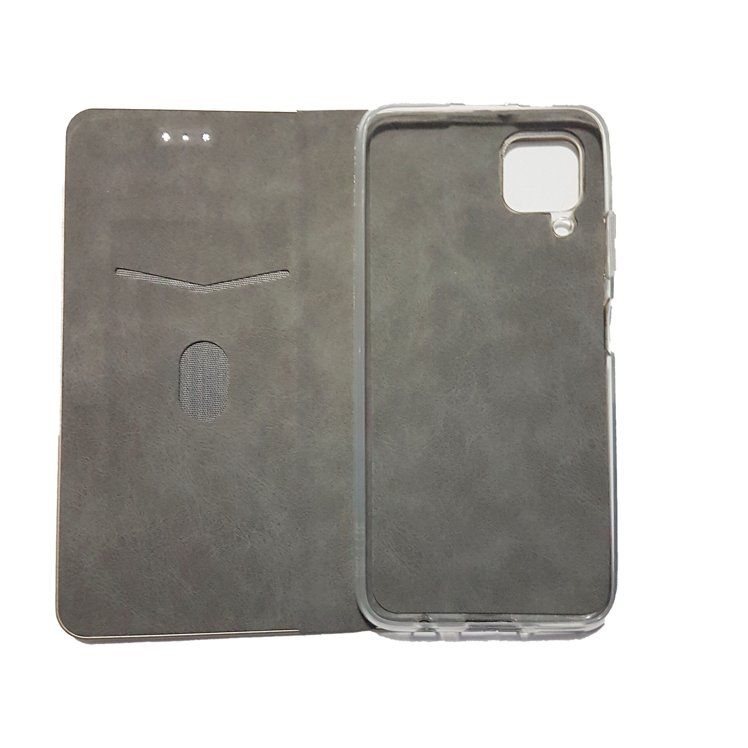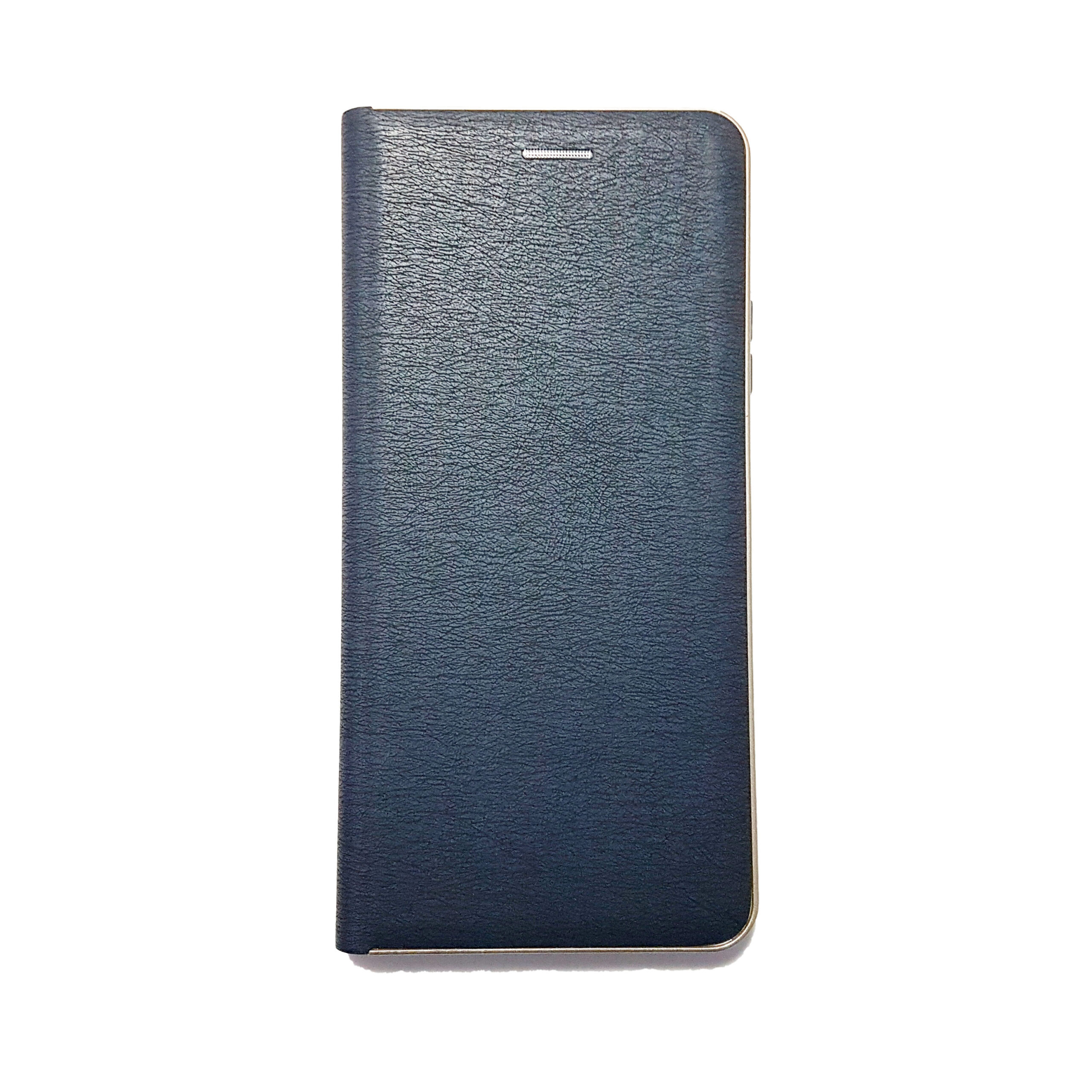 Produsul este realizat dintr-un material discret cu aspect metalizat si moale, are o structura care il impiedica sa alunece din mana si protejeaza totodata impotriva socurilor sau loviturilor. In interior există o țesătură moale care protejează ecranul telefonului de zgarieturi și un buzunar practic pentru carduri sau bancnote. In interior există o carcasă flexibilă din TPU, datorită căreia nu se sparge si astfel telefonul este protej. Are toate decupajele și proeminențele pentru tastele funcționale. Carcasa este inchisă cu un magnet ascuns sub suprapunere. Capacul se pliază intr-un suport, ceea ce facilitează, de exemplu, vizionarea liberă a fotografiilor cu filme sau navigarea pe internet.
